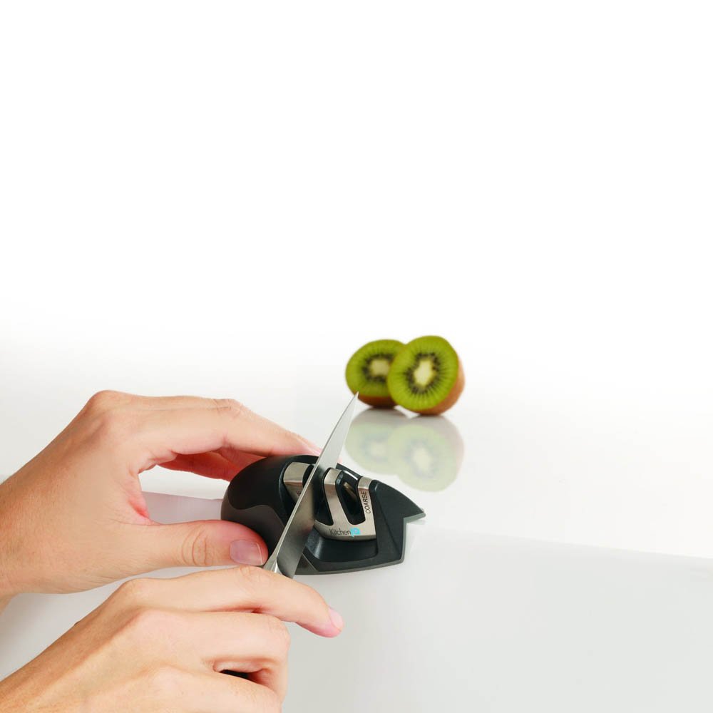 • Patented Edge Grip feature allows sharpening on the edge of the table or counter top- prevents the tip of larger knives from dragging over the surface of the counter